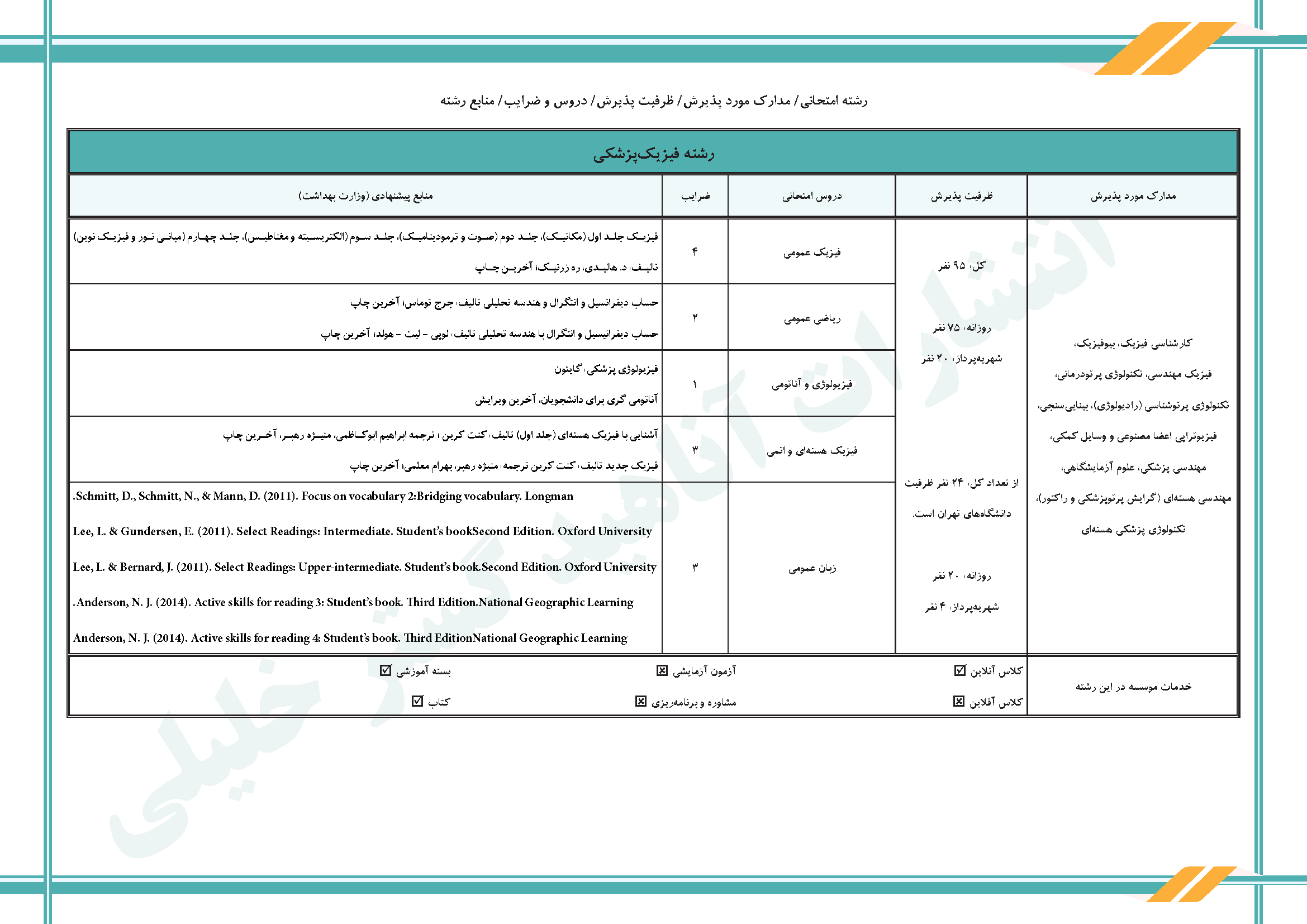 منابع، دروس و ظرفیت پذیرش رشته فیزیک پزشکی بر اساس کنکور سال ۱۴۰۴ میباشد.