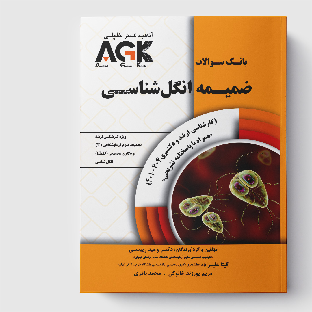 از کتاب های سری ( Anahid Gostar Khalili ) بوده که در گروه آموزشی آناهید گستر خلیلی به چاپ می رسد. AGK ضمیمه بانک سوالات انگل شناسی شامل سوالات سال های 1401-1404 دکتری و ارشد انگل شناسی می باشد که در کنار کتاب بانک سوالات انگل شناسی و نیز کتاب AGK جامع انگل شناسی داوطلبان کارشناسی ارشد و دکتری را از سایر کتاب ها بی نیاز می کند.. در این کتاب پاسخ سوالات به صورت کاملا تشریحی و کامل در دسترس می باشد. ویژگی های کلیدی AGK ضمیمه بانک سوالات انگل شناسی: 1- بانک سوالات کارشناسی ارشد و دکتری تخصصی -2- شامل 3 بخش، 11 فصل و دربردارنده 260 سوال -3- پاسخنامه تشریحی مطابق منابع اعلام شده -4- استفاده از اشکال، جداول و نمودارهای مهم براساس به روزترین منابع -5- استفاده از تکنیک رد گزینه (بررسی تمام گزینه ها) و اضافه نمودن نکات کلیدی به پاسخنامه تشریحی
