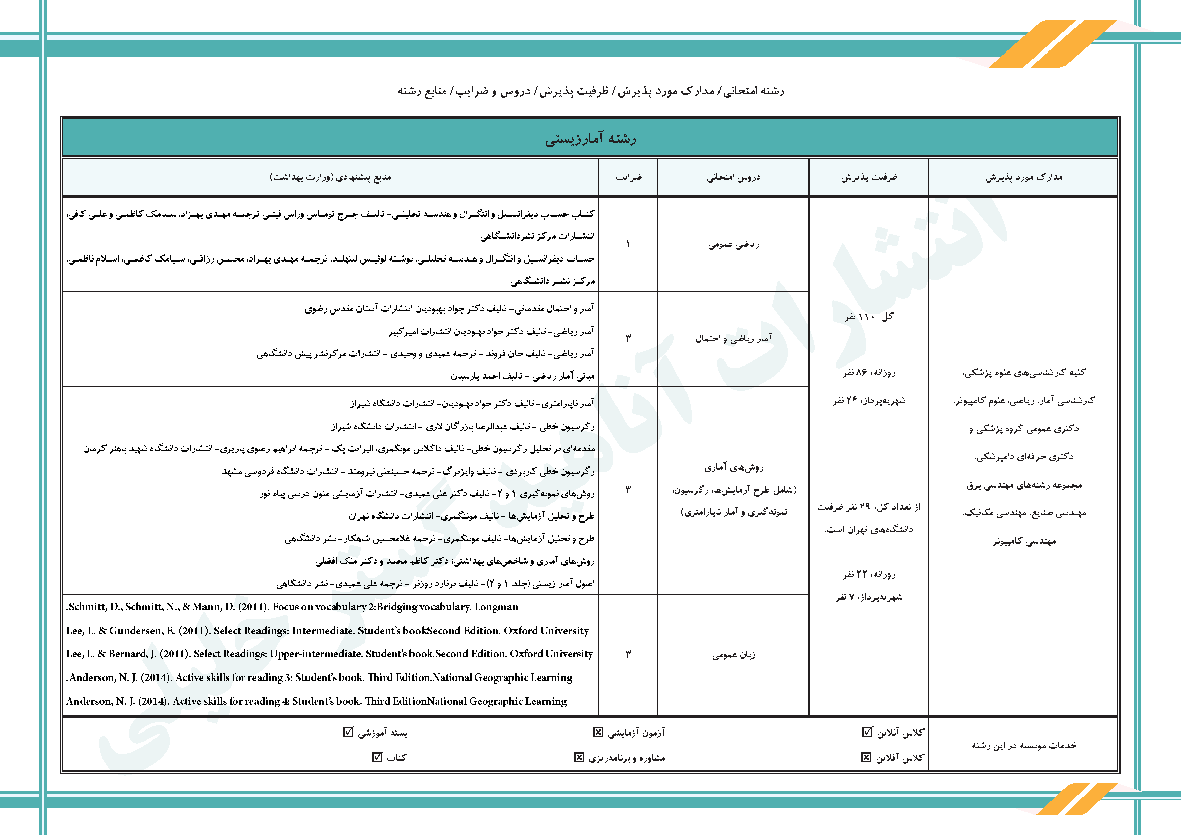 منابع، دروس و ظرفیت پذیرش رشته آمار زیستی بر اساس کنکور سال ۱۴۰۴ میباشد.