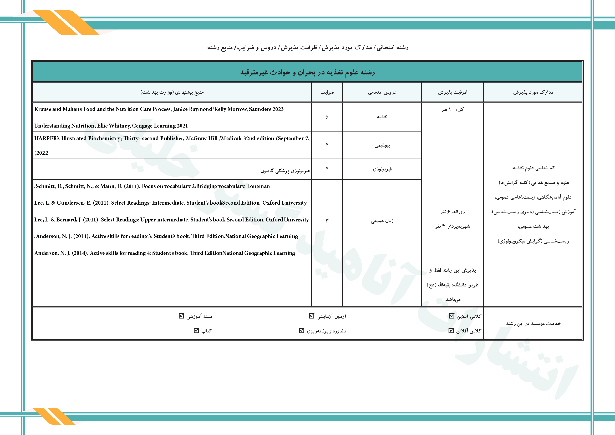 علوم تغذیه در بحران و حوادث غیرمترقبه