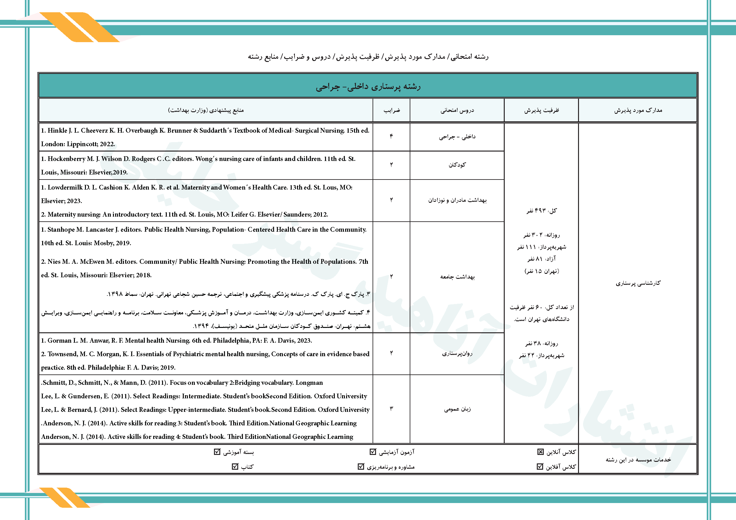 کلاس دکتر معصومه خلجی (گوارش کلیه مجاری ادراری و پوست) (نکته و تست)AGK درسنامه پرستاری داخلی و جراحیآزمون های 13 مرحله ای وزارت بهداشت (ارشد)