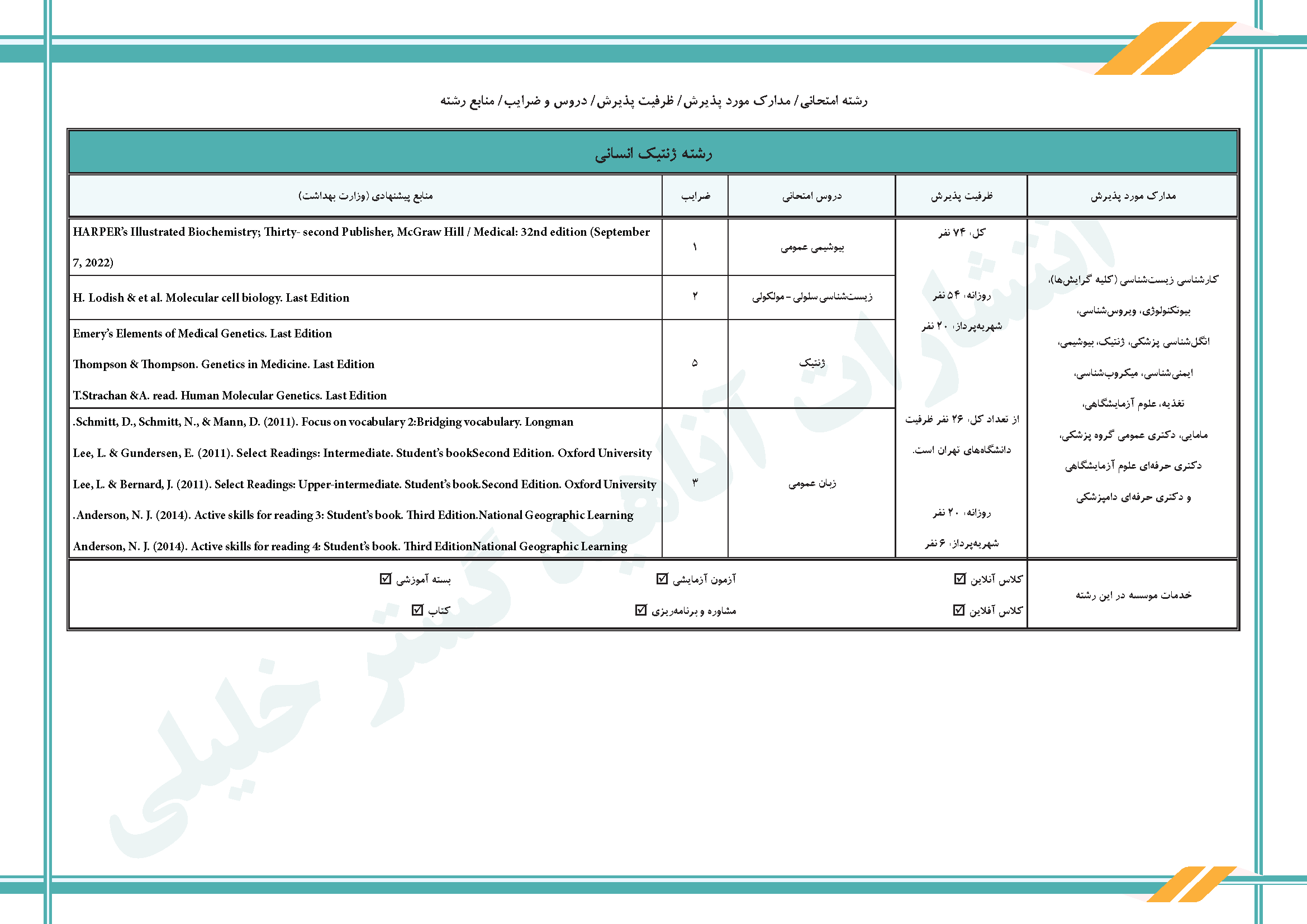 | کلاس دکتر آرین اکبری (نکته و تست) | درسنامه ژنتیک ویژه کلیه گرایش های وزارت علوم و دانشگاه آزاد | آزمون های 6 مرحله آفلاین وزارت بهداشت (ارشد) |