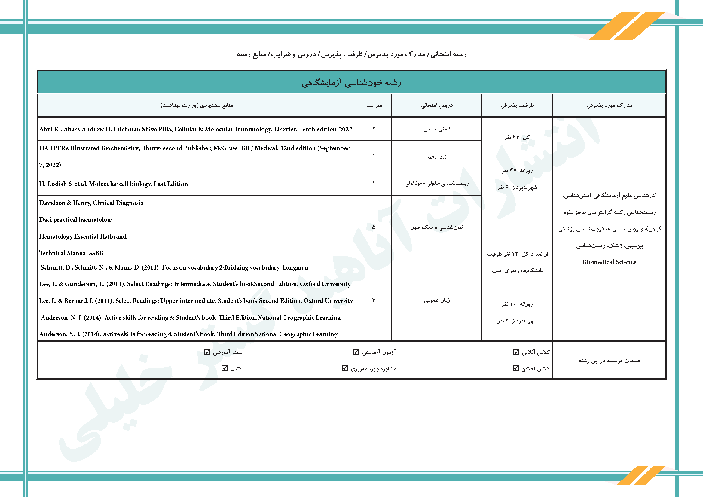 | کلاس دکتر فکوری زاد (ترم تابستان) | AGK درسنامه هماتولوژی و بانک خون (دوجلدی) | آزمون های 13 مرحله ای وزارت بهداشت (ارشد) |