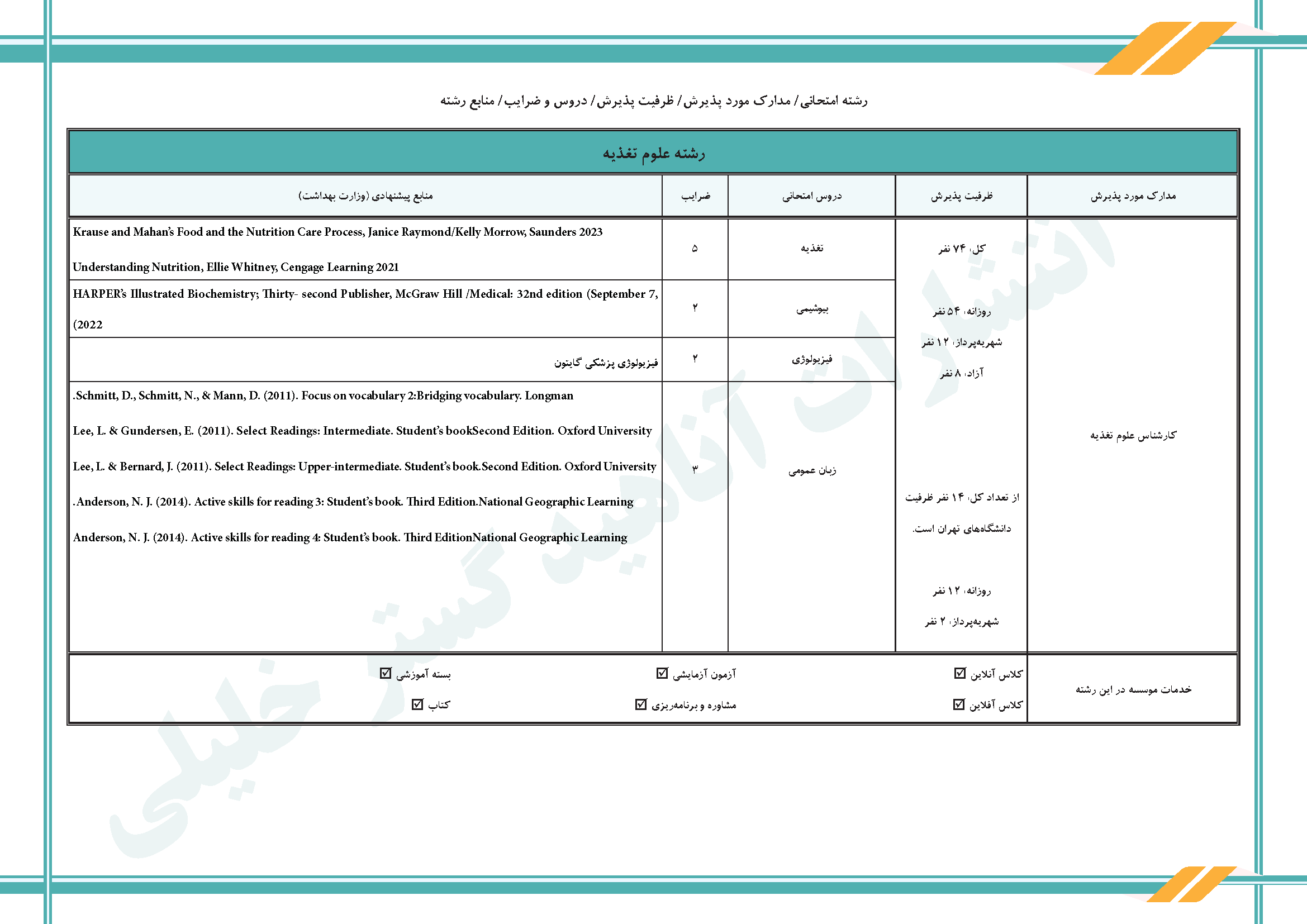 | | جامع تغذیه اساسی و رژیم درمانی | آزمون های 4 مرحله ای وزارت بهداشت (ارشد) |